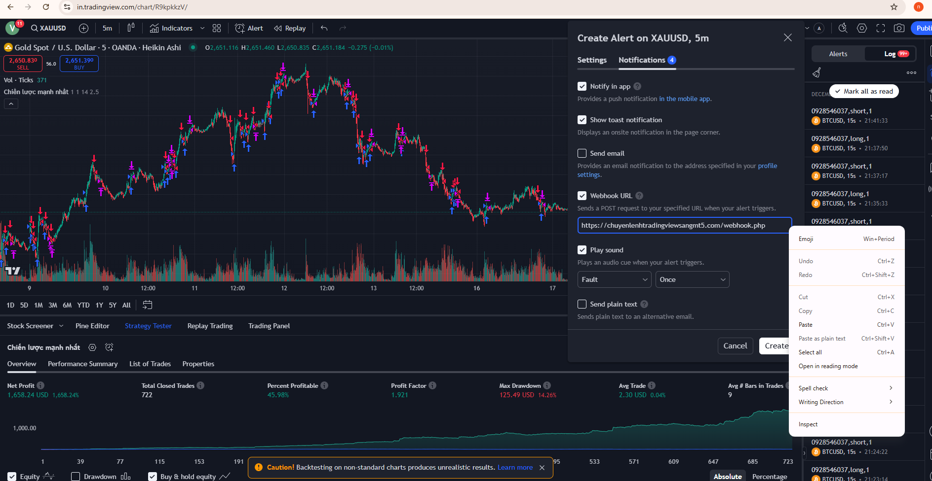 - Tạo cảnh báo cho chiến lược của bạn trên TradingView.